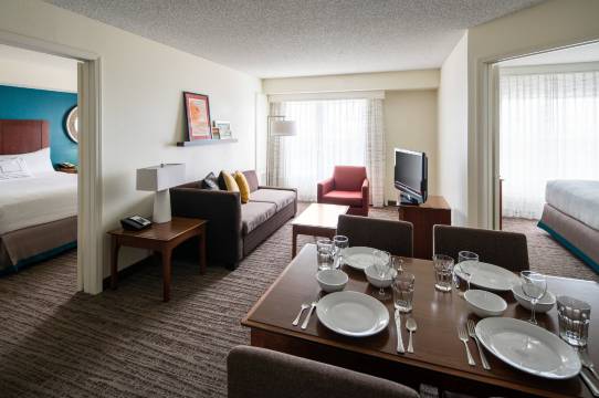 有 155 间客房提供备有冰箱和炉灶的厨房;您定能在旅途中找到家的舒适。您的加厚层卧床备有高档床上用品,且所有客房均提供双人沙发床。免费提供有线和无线上网,此外,37 英寸平板电视提供有线频道,可满足您的娱乐需求。便利设施包括保险箱和书桌,以及带有免费市内通话的电话。