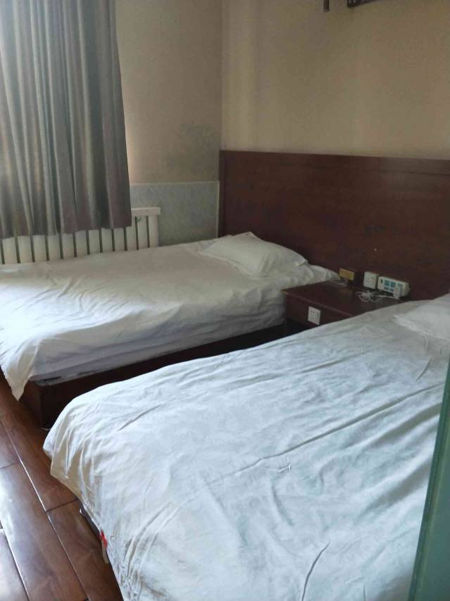 定的三人间,睡了4个人。宾馆临街,楼下就有一个牛肉面馆,吃饭的人很多,对面还有一个大型超市。宾馆有空调,停车场很大,环境不错,没碰到有些人说的情况,个人认为还是值得一住