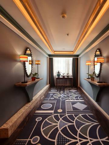 酒店配置高端休闲家具,高品质床上用品,360度旋转液晶电视、24小时热水、WiFi等设施,每间客房均采用高档卫浴设施,30-64㎡客房空间融合细节设计,精心打造独具设计感和尊崇感的客房。