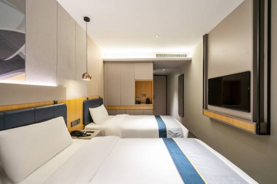 房间干净整洁。没有异味,热水和冷气都很及时,客房阿姐一直都在,床品更换的很勤快。让人放心。前台可以送外卖代收快递寄存东西。很稳妥,很踏实。前台说话都是温温柔柔的,做事情利利索索,位置也不算偏僻,打车公交车共享单车都很方便。价格实惠