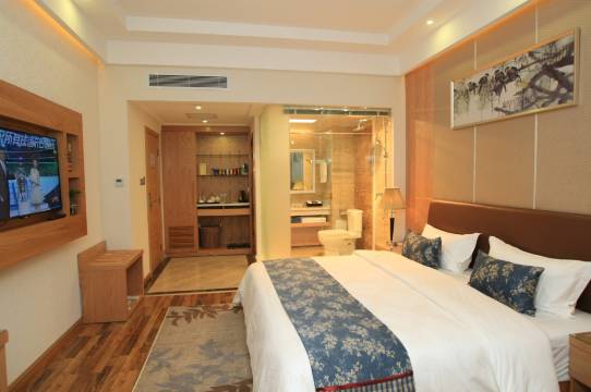 房间挺大,挺干净的,配套很齐全,床很大,床上用品比较好。睡的也很舒服。早餐厅里,也是清清爽爽的,有米线、面条、包子、粗粮、水果,炒菜,还有热饮机的4种饮料小孩都很喜欢,住的舒适。下次还来住