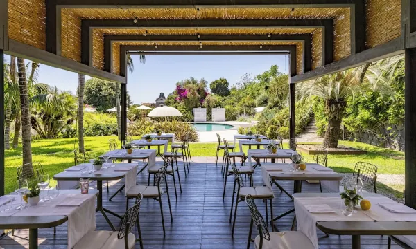 除了泳池边的酒吧(非常适合快速午餐),我们还有幸参加了八月十五日的晚餐:这是一次非常棒的体验,食物和饮品质量上乘,伴随着柔和的灯光和现场音乐,营造出迷人的氛围。