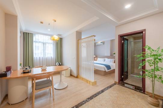 住的是大床房,干湿分离看,有投影的房间,环境是可以的,前台小哥哥小姐姐的服务态度很好,出游住这里很方便去小公园,三中,万象城等玩耍很方便,酒店门口也有共享单车很方便