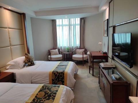 考试定的房间,酒店环境安静,房间卫生还可以,而且中午有盒饭,可以直接买很方便。热水也有,房间双床房标间不吵闹。