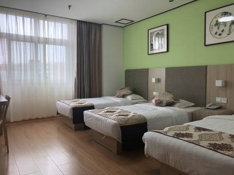 适合一家三口出游,三张床挺方便,窗外就是小学操场,出门打车公交都可以,这个价位很划算