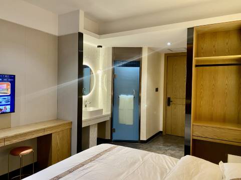 房间里面的格局非常不错,干湿分离的,而且有最喜欢的大镜子,环境干净卫生,服务态度好。还有晾衣架很方便出差的伙伴