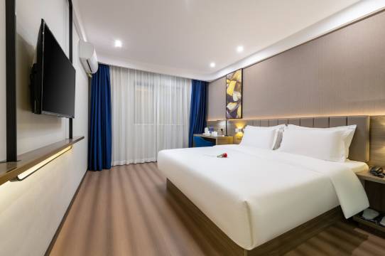 性价比非常高的一间酒店,离关口非常近,步行两个路口就到了,楼下饭店也很多,吃饭都很方便。前台服务很好,为携程会员升级房间