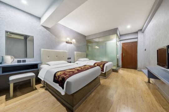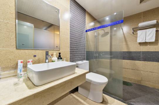刚进房间可能会有些味道,可以自带香水或者清新喷雾,房间干净整洁,一次性用品齐全,有吹风机和烧水壶,床头柜上有充电器和纸巾,热水是二十四小时供应(水压很大冲澡非常舒服),有免费WiFi和电视机,WiFi密码可问前台姐姐因为我的房间没写密码,住的时候停了一次电不过很快恢复了问题不大
