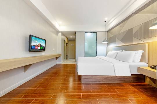 虽是临街酒店,但有专属停车场,停车场和酒店后门相通,出入方便。房间大,隔音效果好,拼床方便,适合亲子入住。