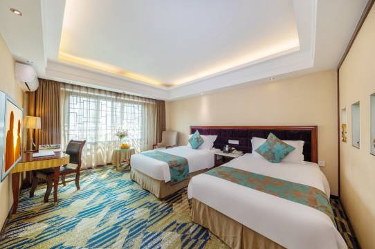 酒店地理位置挺好的,去景点和商业区都方便,旁边就有个沃尔玛超市,前台热情,会主动升级房型。房间干净整洁,床品舒适。最想夸的是服务细节,妹妹们都挺暖心的,进出门店都会礼貌打招呼,无论是商务出行还是家庭旅游都推荐,每次来都选择这里,挺好的