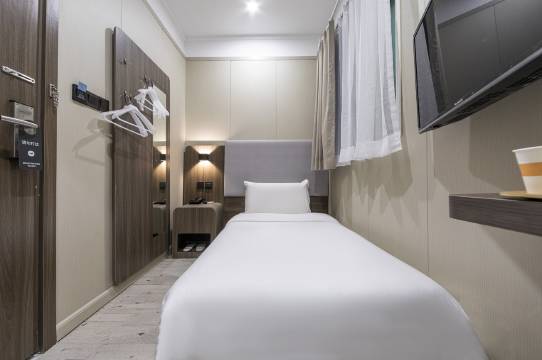 房间小点,卫生很不错,店家还给升了房,价格在上海汉庭中算很实惠的,推荐入住。