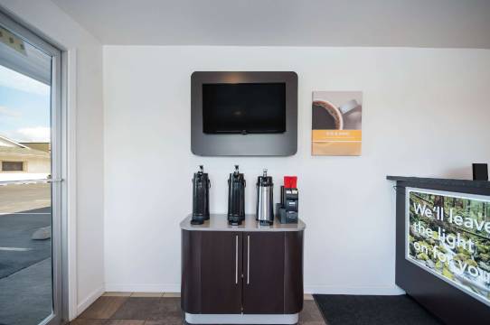 您可以到服务华盛顿伯灵顿 6 号汽车旅馆住客的小吃吧/熟食店随便找点吃的。