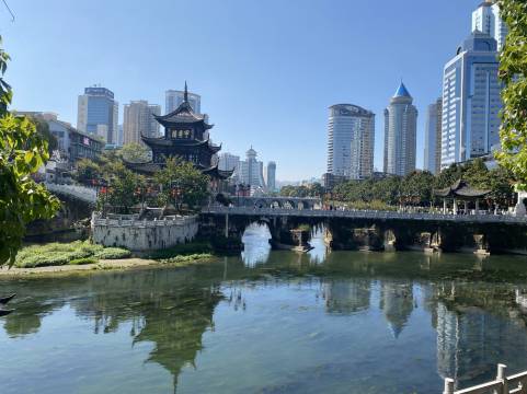 酒店在市中心,离民生路好吃街,甲秀楼都不远,走过去大概2公里左右,可以顺便逛逛➕品尝美食,出了地铁站就是网红法院路老素粉,喜欢排队的可以去尝试一下,人太多太多了,,我去它隔壁老素粉吃的