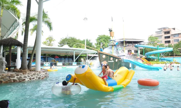 晨起,你可以带着孩子去布洛陀广场散步,或去看一看姆六甲石雕,感受壮族文化的魅力;还可以陪伴孩子在水上乐园区体验螺旋滑梯、组合滑梯、漂流河等设施的魅力;超大LED屏正播放热门的电影,饿了还能吃到特色烧烤。