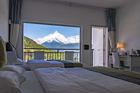 酒店就在梅里雪山观景台旁边。房间的露台和天台就可以拍梅里日照金山,时间到就可以拍,不用预早到观景台,不用跟人挤。酒店老板非常亲切。早餐非常丰富。十分满意这次入住!