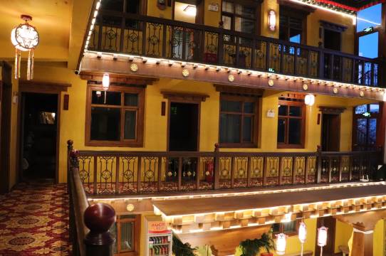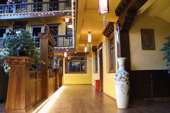 这是一家纯藏式装修的民族特色酒店,酒店深处闹市而独得清幽,近6百平米的采光中庭极具特色,幔帐垂帘,绿植环抱,环境舒适、温馨。酒店内提供24小时热水,无线网络、设有地暖、加湿器、扫码鼻吸式供氧设备等。