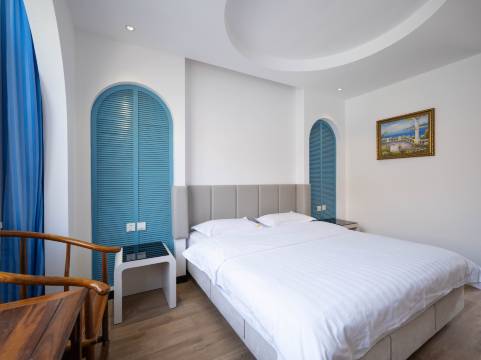 #赞#周边餐饮、地段、走廊隔音、购物便利性、床品舒适度、性价比令我满意;地段可以,环境不错,古香古色,青山渔村最大的民宿。有餐饮部,进门右手边还有咖啡饮料简餐,手打茶茶味十足,咖啡现磨,可以自助烧烤。服务人员热情,周边早晚风景很美,推荐。