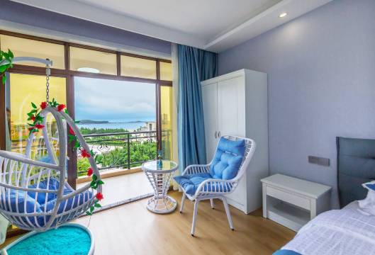 独具优美景观。海景民宿地势高,视野开阔,24小时热水、分体式空调、数字电视等配套设施完善。海景房内设有阳台、落地门窗,配藤木摇椅,明亮宽敞。