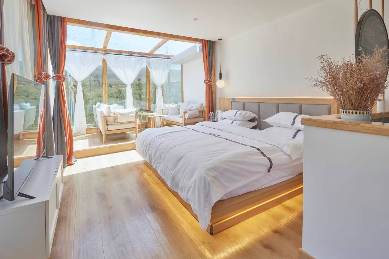 老板人很热情到小院里的格桑花开的正艳,房间有地暖住的很舒适非常现代风简约舒适,宠物友好我家嘟嘟很喜欢在落地窗前看风景