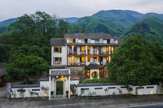 民宿位于报福镇龙王山漂流和天目山漂流旁,经过蜿蜒的山路、满是石头的小溪、绵延的竹林、依山而建的村落,在大山深处,双鱼堂立于潺潺溪流之畔。