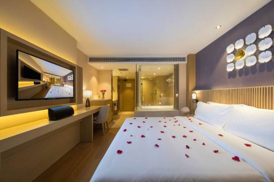 进入酒店后,前台热情接待我们,主动为我们准备矿泉水,两天旅游根本不需要在外面买水,这点非常好,孩子早餐也是给我们免了,到了房间里,房间布局非常合理,干净整洁,亲子房间氛围灯效果小朋友很喜欢,让疲惫了一天的我们有个好心情,外卖可以机器人送到房间门口,非常方便,早餐还可以,属于正常水平,总体来讲,下次还会选择这家连锁品牌。
