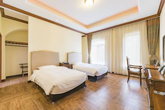 京都颐和利兹假日酒店位于北京房山西南20公里处京都旅游度假区内,由一座欧式庄园会所与68栋独体别墅酒店构成。酒店独体别墅客房由3个标准房和1个贵宾大床房构成,每个房间内配置独立卫浴。每栋别墅内配迷你酒吧,棋牌室,家庭料理厨房,有线电视、无线上网等配套服务。可满足家庭度假、婚礼庆典、商务会议、高尔夫度假我们会为您提供温馨舒适的住宿环境及热情周到的一站式服务,在您享受假期的同时可满足您携手踏青、适量采摘的家庭度假乐趣.