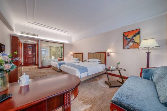 酒店拥有标准间、豪华房、豪华套房、麻将套房和总统套房等280间各式客房,所有房间均配备液晶电视、私人保险箱、高速光纤、WIFI网络及多个国内外卫星电视频道等设备设施,温馨、舒适的休息环境,让您有家一般的感觉!