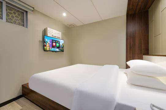 位置很好,出去一拐弯没几步就是地铁入口,后面很多吃的,订的是双床还可以,不是最新的房间,但老板很好,看我们人多还给我们多一点用品。后面还给我们换了两个单间,算是互惠互利吧,单间看得出是新装修的,内饰都比较现代了,小是小了一点,但不影响我们,总体很满意,毕竟是中心点了,离烟台山,上下杭都不远,后面几条街好多卖衣服的,超多,很好逛。