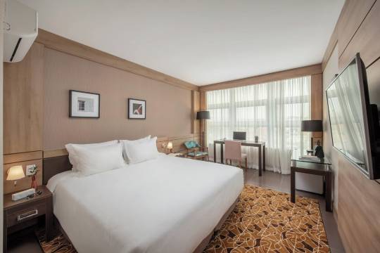 有 144 间空调客房提供迷你吧和智能电视;您定能在旅途中找到家的舒适。提供免费无线网络,方便您与朋友保持联系;有线频道可满足您的娱乐需求。私人浴室提供免费洗浴用品和吹风机。便利设施包括可存放笔记本电脑的保险箱和书桌;而且每天提供客房服务。