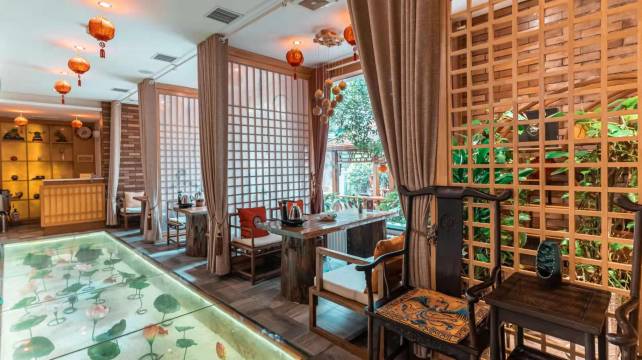 这是一家集住宿,餐饮,茶苑,会议,商务为一体的茶文化庭院式精品酒店,设有可容纳400多人宴会厅,小型会议室,免费健身房以及环境优雅的茶苑,是您宴请客人,商务会议,商务洽谈的理想之选,