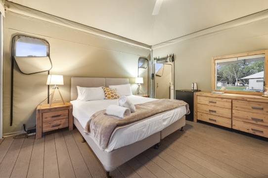 这次旅行我太喜欢了,餐厅很棒,袋鼠们非常友好可爱,灌木丛林体验感十足。徒步小径花了我一个小时,但非常值得。我们百分之百推荐豪华露营。床单出奇地干净,设施齐全。可惜的是我的孩子们不太喜欢有虫子的地方。他们非常喜欢其他的活动。湖水非常宁静,在淡水中游泳真是种特别的体验。这绝对是独一无二的!😍