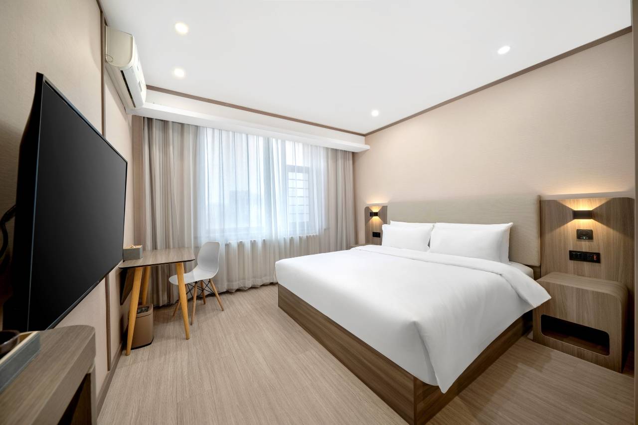 酒店房间很干净整洁,设施齐全,床很大舒服。卫生间干湿分离。停车场免费停车,楼前楼后都有停车位。早餐很棒