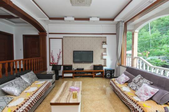 老板娘服务热情的,房子后面有条小溪,溪水清澈见底,有亲水漫步,还有人造瀑布,环境优美