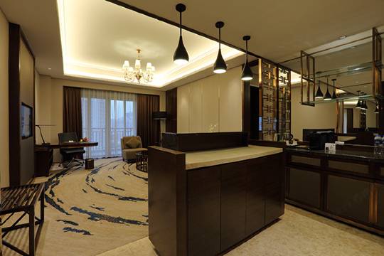 酒店占地面积约7万多平方米,建筑面积6.5万平方米,西班牙风格设计的酒店依山傍湖,环境优雅、静谧。酒店拥有设计精美、功能齐全的客房;风格各异的餐厅和酒吧,西餐厅可容纳220人同时就餐,荟萃寰宇美馔、欧陆自助餐和西式零点让人流连忘返。一楼大堂吧为客人精心准备有现磨咖啡,轻松怡然。特色餐厅及湖边酒吧更有精选咖啡、茶饮、鸡尾酒和全球佳酿,为夜晚时光增添无限乐趣。酒店拥有中餐大厅含包厢在内近380个餐位,其中拥有10个风格迥异的中餐包厢,博采粤菜等中餐料理之精华,以名厨的精湛手艺为您打造味觉和视觉的盛宴。日本料理提供精美的日式美食,铁板烧名厨现场主理各种佳肴,是商务宴请、家庭聚会的上佳选择。另外,酒店按客人所需,为您度身定制各种商务、生日等派对,满足你的各种需求。