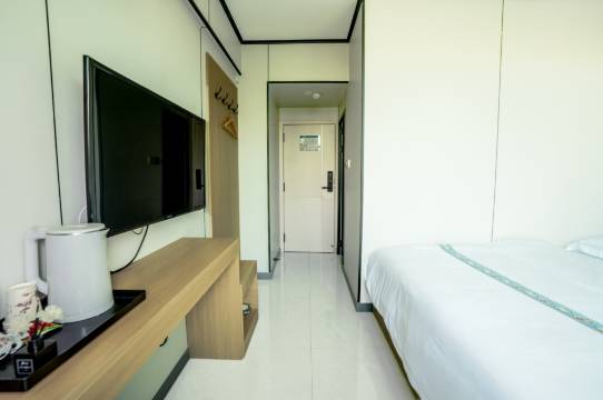 粉色的墙面让人很舒适,房间和卫生间都挺大的,卫生干净,服务到位,主要停车也是免费,房间配送的物品也比较丰富,棒棒的