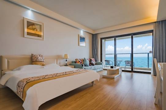 温馨、简约风格的客房里配置齐全,空间十分宽敞,即使全家入住也有足够的地方让孩子玩耍。套房里配设了厨房和用餐区,你可以为家人、朋友烹饪美食,就像在家里一样自在。超大观景阳台上有竹藤桌椅,可以一边吹着海风,一边和同伴悠闲地喝茶聊天。