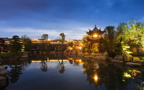 酒店是中式四合院的风格,跟景区非常应景,很高大上,还送了景区门票,烟花秀非常的震撼,服务前台的小哥哥小姐姐态度也很好,酒店观光车接送也是很方便。