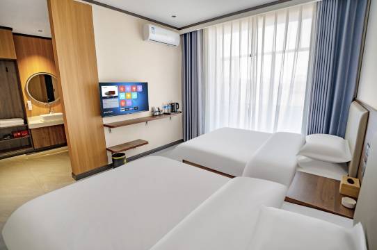 房间非常热乎,套房适合一家出行入住,价格很亲民,房间设计很用心,套房里边的套间有🚪,很贴心,酒店门口停车很方便。下回还会入住。