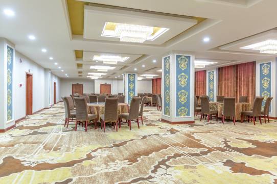 酒店地处达莱呼布镇金丰源商贸城门口,自助餐厅,会议室、大型停车场等配套设备;酒店同边超市、饭店、娱乐场所一应俱全;距离额济纳旗胡杨林景区步行10分钟即可到达,是您休闲旅游、自驾观光的住宿选择!苏泊淖尔北路坐落在阿拉善盟额济纳旗达来呼布镇苏泊淖尔北路,毗邻金丰源国际商贸城,坐拥神奇美丽的胡杨林黑河之畔。酒店地理位置优越,交通便利,驱车前往额济纳旗胡杨林旅游区、神树、居延海,及中蒙策克口岸仅需10至40分钟。