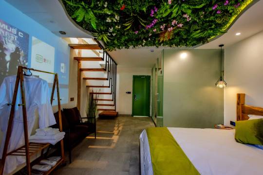 老板人很好,本来订的一般房,老板居然免费给我们升级到优质房,住着舒服,房间宽大彩光好,希望下次再去住。