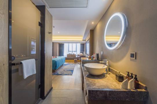 酒店智能时尚,现代简约于一体;配合65KL超清电视互联网生态系统及300兆光纤,全智能房控系统,多功能会客厅,在这里能听音乐,看电影、迅速释放压力,既能体验星级酒店的舒适与私密又能感受浓郁的自然人文氛围,是您商务出行、城市度假、休闲娱乐的佳选。酒店专注于为每一位到店的宾客提供令人惊喜和感动的服务,而每一位工作人员的贴心,暖心照顾是我们的承诺。亲身来体验,你的感受会与众不同。