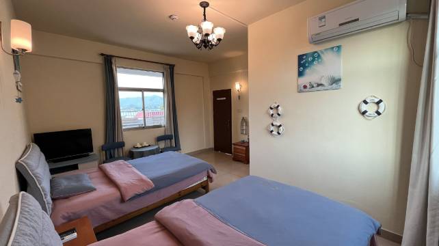 干净,卫生,能洗漱,有wife,空调免费,有平价酒水卖,有游玩项目,能晾晒衣服,出门就有早点店。有猫!顶楼能看海!(如图)离桔钓沙近!实惠!