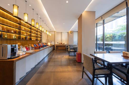 酒店大堂环境优雅,装修有艺术风格特色,前台服务态度好,还有自助早餐,不错的体验!