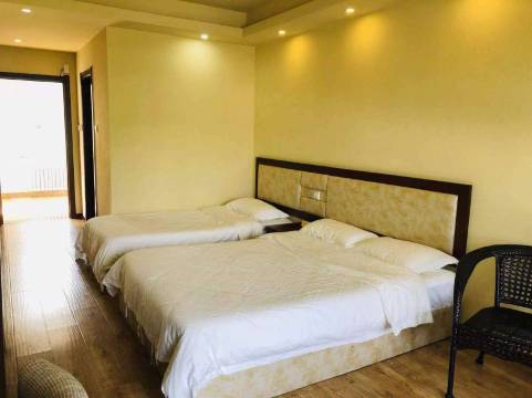 房间带一个阳台,是这附近唯一的一个酒店,床品还可以,不提供瓶装水,国庆期间入住人较多,点餐后大约一个小时才能吃上