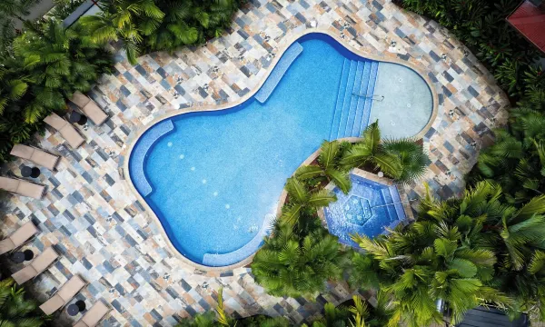 地理位置优越,花园美丽,非常干净,还有两个漂亮的游泳池。