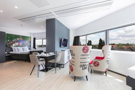 非常不错的一次酒店入住,印象深刻。酒店前台是自助办理入住,无人值守,几次输入有关信息显示错误,正准备给酒店人员打电话,值班小伙子来了,非常热情的办理了入住手续。进到房间,感觉非常不错,房间宽敞,设计新颖,带有厨房可以做饭,非常干净,而且各个设备都保持的很好,最值得可圈可点的是一排窗户,把屋外的一片风景变成了一幅一天都在变的画,很有创意,难怪该酒店的房卡上说他们2019.2020.2021获得了欧洲酒店设计奖。