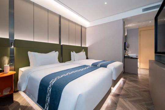 住的舒服!床软空调安静,卫生干净没有异味,性价比高,前台服务好,房间隔音也不错睡的很踏实!