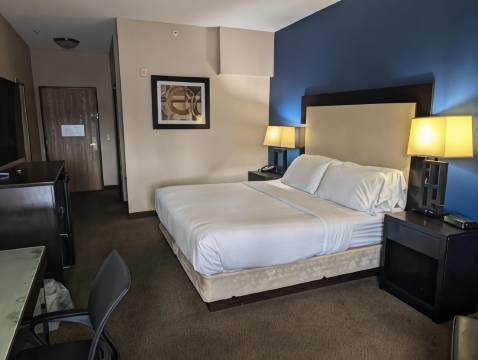 有 90 间客房提供冰箱和微波炉;您定能在旅途中找到家的舒适。免费提供有线和无线上网,此外,50 英寸平板电视提供有线频道,可满足您的娱乐需求。浴室提供淋浴/盆浴组合和吹风机。便利设施包括电话,以及书桌和茶具/咖啡用具。