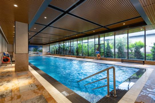 很好,满意的一次入住体验,还有游泳池,室内的!水温合适,小孩玩的开心!位置也不错,停车方便。外卖可以上楼到房间,方便!