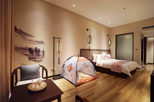 环境:大堂佛系元素敞亮大气,房间新中式风格,走路十几分钟到体育馆,窗外就能看到场馆